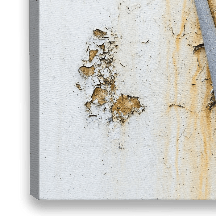 Weathered Past ist eine Studie über die Unbeständigkeit selbst des solidesten Materials. Die abgeplatzte Farbe auf einer eisernen, rostigen Oberfläche suggeriert Zerbrechlichkeit.