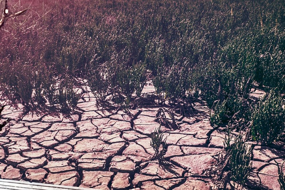 Auf dem Bild ist ein unmissverständliches Bild von Dürre und Verwüstung zu sehen. Soweit das Auge reicht, erstreckt sich ein ausgetrocknetes Gebiet mit kargem, rissigem Boden und einer sengenden Hitze, die die Umgebung in einem erstickenden Griff hält. In dieser trockenen Landschaft steht ein einsamer Baum, der einst lebendig und üppig war und nun zu einem Symbol für Kampf und Überleben geworden ist.