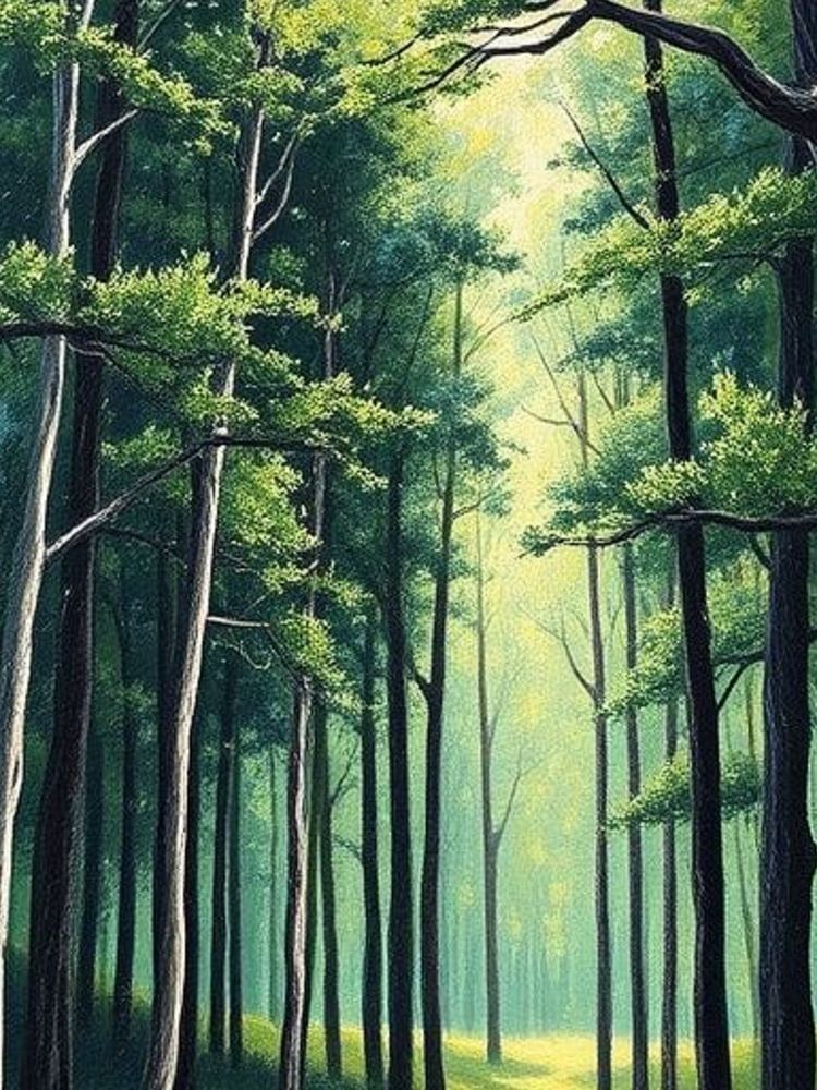 Treten Sie mit diesem atemberaubenden Gemälde eines magischen Waldweges in eine Welt voller leuchtendem Grün ein. Das Sonnenlicht dringt durch das üppige Blätterdach, beleuchtet das leuchtend grüne Moos und lässt den Weg in einem goldenen Licht erstrahlen. Die hohen, uralten Bäume mit ihren ausladenden Ästen scheinen Geheimnisse zu flüstern und laden Sie ein, tiefer in die ruhige Landschaft einzutauchen. Dieses Stück fängt die friedliche, zeitlose Schönheit der Natur ein und ist damit die perfekte Ergänzung für jedes Zuhause oder Büro, das die Ruhe der Natur ins Haus holen möchte. Es ist ein ideales Geschenk für Naturliebhaber, Wanderer oder jeden, der die beruhigende Kraft der Kunst zu schätzen weiß.
