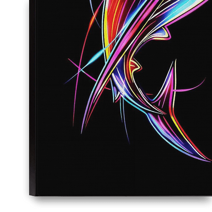 Verleihen Sie Ihrem Raum mit diesem leuchtenden Neon-Haifisch-Wandbild mit dynamischen Farben und auffälligem Digitaldesign einen kühnen Touch. Perfekt für Meeresliebhaber und Liebhaber moderner Wohnkultur. Ideal für Wohn-, Schlaf- und Büroräume.