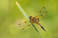 Bestelle das Foto Vierfleck Libelle sitzt auf einem Grashalm von Uwe Ulrich Grün als Kunstdruck auf Leinwand, Alu-Dibond, als Poster, Fototapete oder Acrylglasbild.