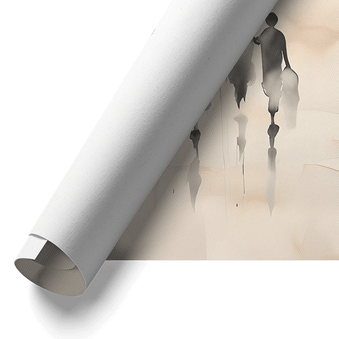 Bei der abstrakten Zeichnung "Vierköpfige Familie" handelt es sich um eine Familienzeichnung, auf der die Eltern Hand in Hand mit ihren beiden Kindern dargestellt sind. Es wurden Aquarelle, Schwarz-Weiß- und Beigetöne verwendet.
