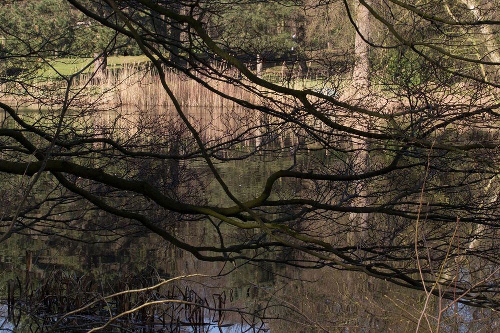 Bestelle das Foto Vijver met takken op voorgrond von Jaap Mulder als Reproduktion auf Leinwand, Alu-Dibond, als Poster, Fototapete oder Acrylglasbild.