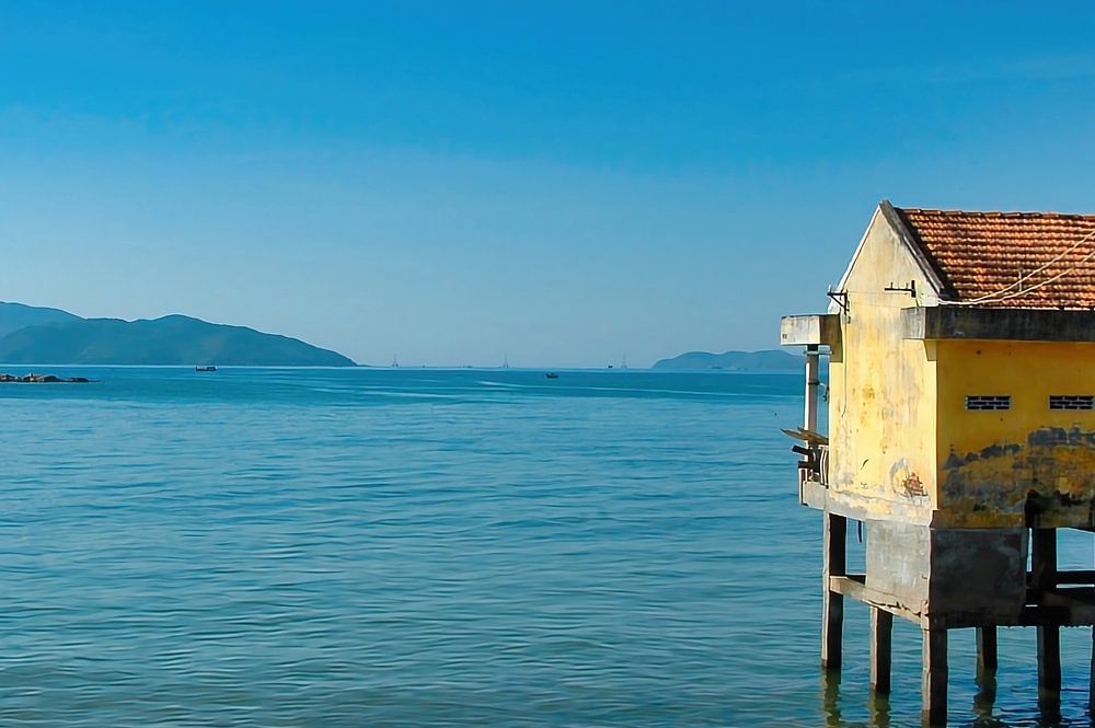 Dies war eine davon: an der Küste des Golfs von Tonkin. Weite, menschenleere Strände und dann plötzlich eine bunte Hütte auf Stelzen. Der Blick in die Ferne auf das blaue Meer.