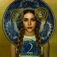 Bestelle dieses Popart-Wandbild Vintage Beauty Niederländisch Blau von Yvonne Zeldenthuis als Kunstdruck auf Leinwand, Alu-Dibond, als Poster, Fototapete oder Acrylglasbild.
