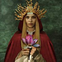 Auf dem Kopf trägt sie eine Krone aus goldenen Korallen, ein Erbstück ihrer Vorfahren, als Zeichen ihrer königlichen Abstammung. Die Lilie glänzte wie ein Juwel in ihren Händen, ein Symbol…