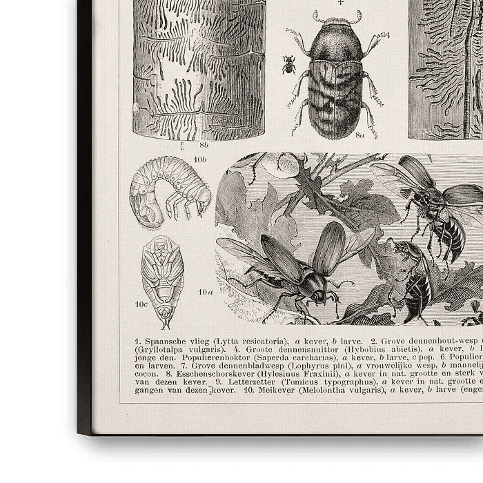 Auf diesem antiken Teller sind verschiedene für den Wald schädliche Insekten abgebildet. Hauptsächlich Käfer und Wespen. Unter anderem Spanische Fliege, Grille, Kiefernrüssler und Maikäfer.