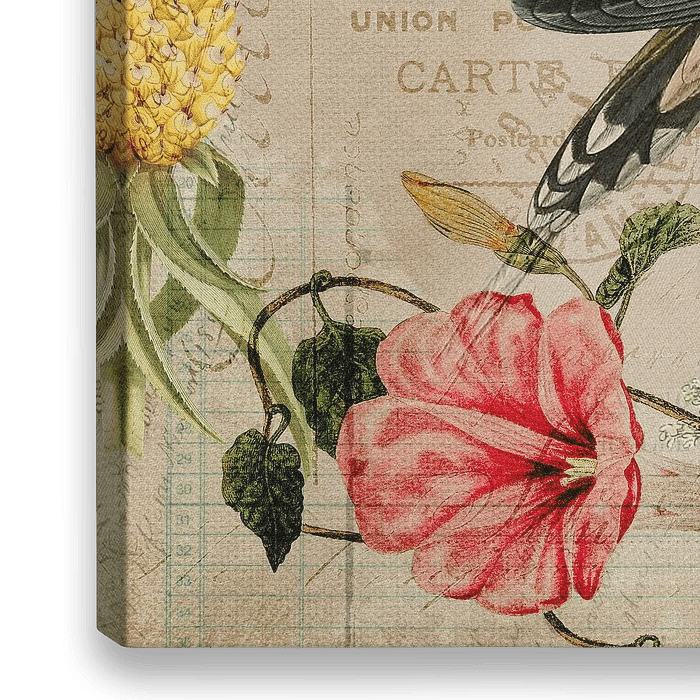 Bestelle dieses Blumen-Wandbild Vintage Kolibri von Andrea Haase als Reproduktion auf Leinwand, Alu-Dibond, als Poster, Fototapete oder Acrylglasbild.