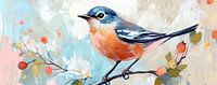 Vogel | Fröhlicher Sommervogel auf einem Ast von Blickfänger Gemälde