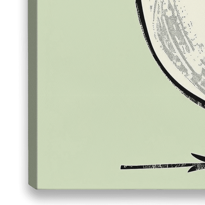 Vogel - Dieses Vogelgemälde zeigt einen stilisierten, abstrakten Vogel mit einem auffälligen gelben Auge und einem großen grünen Flügel vor einem weichen pastellgrünen Hintergrund.