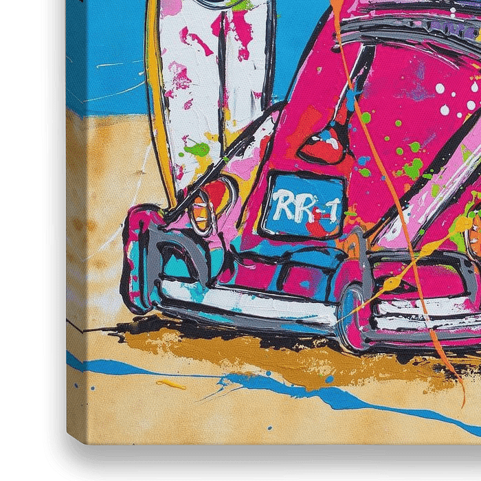 Rosa Käfer am Strand von der Künstlerin Renate Rolefes. Das Originalbild ist 80 x 60 groß und mit Acrylfarbe gemalt.