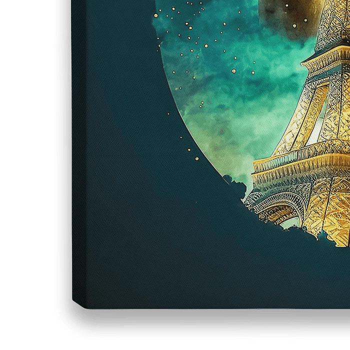 Bestelle dieses abstrakte Wandbild Vollmond Eiffelturm von Vlindertuin-Art als Reproduktion auf Leinwand, Alu-Dibond, als Poster, Fototapete oder Acrylglasbild.