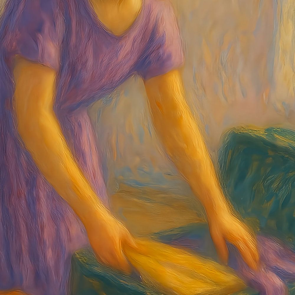 Dieses Kunstwerk ist Teil der Serie "Moments of Pause", einer Reihe von stillen, symbolischen Bildern, die Momente des Wartens, des Aufbruchs, der Reflexion und des Übergangs darstellen. Jedes Werk zeigt eine einzelne oder fast einzelne Figur in einer räumlichen, kontemplativen Umgebung.