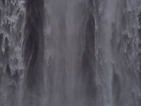 Nahaufnahme des berühmten Wasserfalls Skogafoss, eine der beliebtesten Sehenswüridgkeiten an der Südküste von Island, im Winter mit Wasservorhang. Das Wasser stürzt hier an einer Felskante 60 m in die Tiefe.