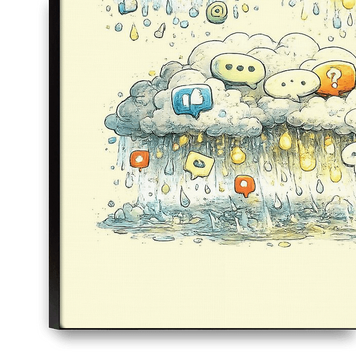 Ein Wettersystem, das von Stimmungen, Ideen und unvollendeten Reaktionen geprägt ist. Dieses Kunstwerk spiegelt wider, wie Emotionen zirkulieren, kollidieren und ohne Vorwarnung fallen.