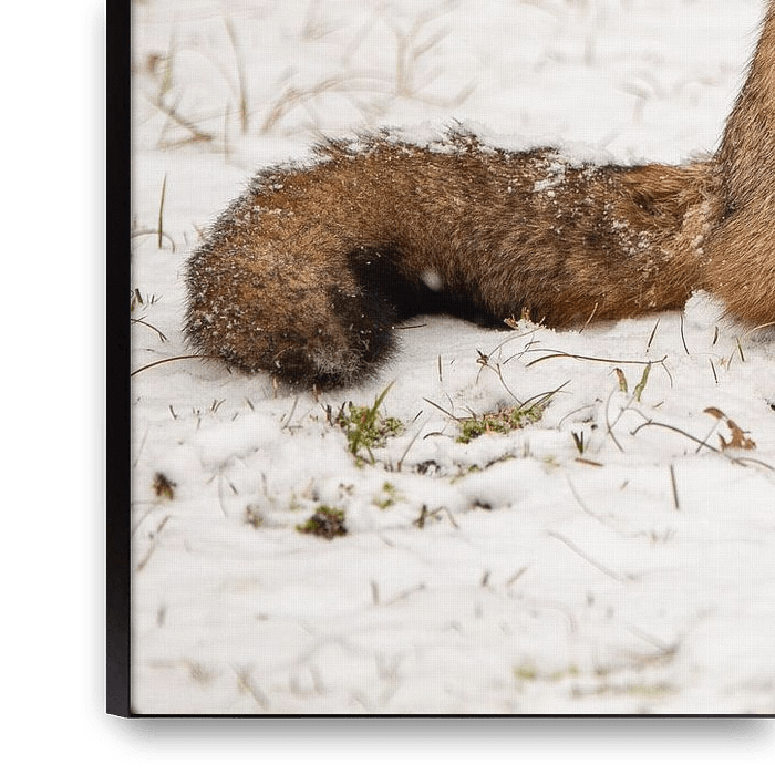 Bestelle das Foto Vos sitzt im frisch gefallenen Schnee von Arnold van der Horst als Reproduktion auf Leinwand, Alu-Dibond, als Poster, Fototapete oder Acrylglasbild.