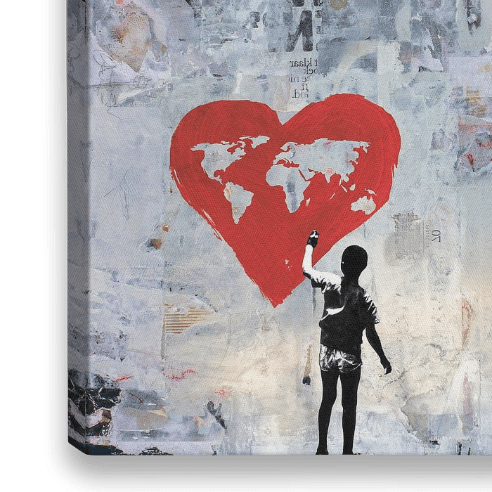 Ein Junge malt die Welt an einer verfallenen Mauer. Er möchte klarstellen, dass die Welt verrückt geworden ist und dass nur Liebe die Welt retten kann.