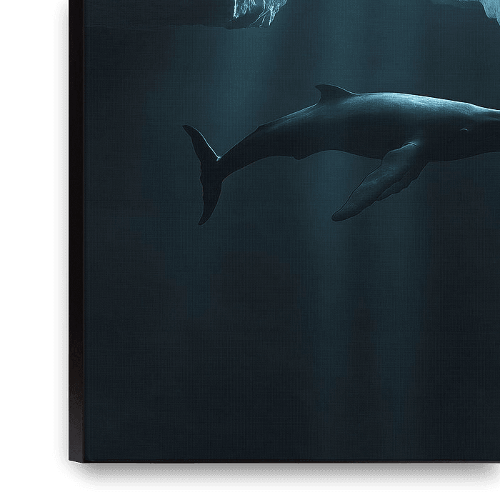 Bestelle dieses Landschafts-Wandbild Wal unter Eisberg von Art & Soul Creations als Reproduktion auf Leinwand, Alu-Dibond, als Poster, Fototapete oder Acrylglasbild.