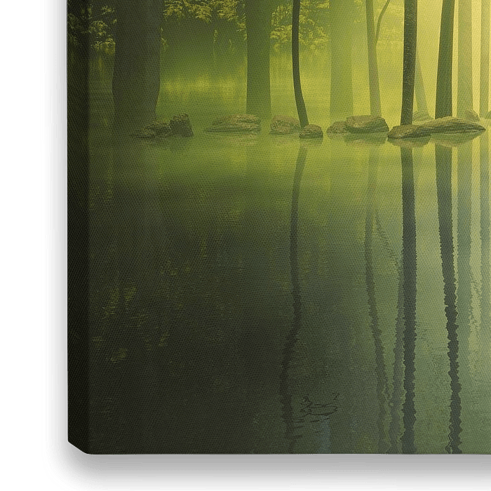Bestelle das digitale Kunst Bild Wald und See von Angel Estevez als Reproduktion auf Leinwand, Alu-Dibond, als Poster, Fototapete oder Acrylglasbild.