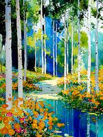 Bestelle dieses Blumen-Wandbild Wald von Klimt Stil 1 von JBJart Justyna Jaszke als Kunstdruck auf Leinwand, Alu-Dibond, als Poster, Fototapete oder Acrylglasbild.