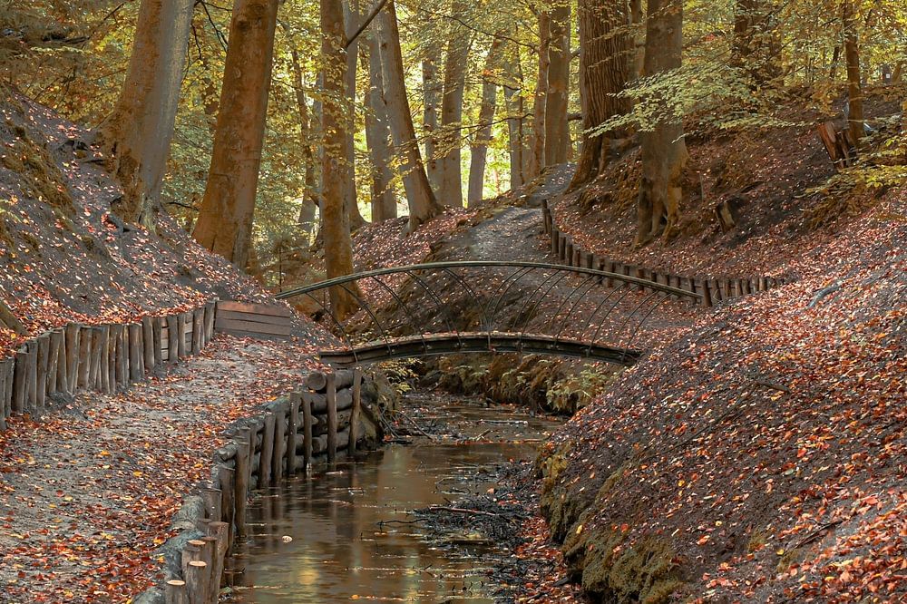 Im Park Beekhuizen in der Nähe des Nationalparks Veluwezoom können Sie einen schönen Spaziergang entlang des Baches durch den Wald machen.