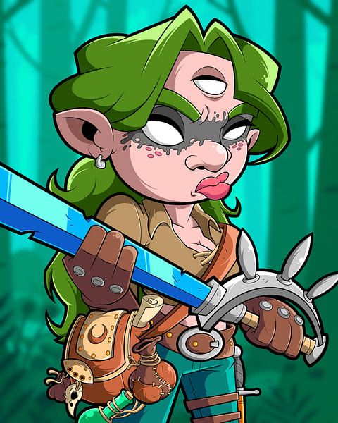 Sein Name ist Clymore, ein Wächter des Waldes. Er bewacht jeden Zentimeter seines Territoriums. Wenn Gefahr droht, schlägt er lautlos zu – Originalkunstwerk von sugiartosss –