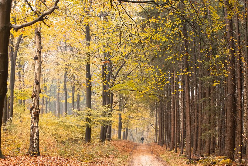 Schöne Herbstfarben im Wald des Nationalparks Utrechtse Heuvelrug. Der Amerong-Wald ist ein idealer Ort für einen schönen Herbstspaziergang.