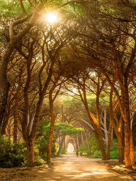 Schöner Pinienwald in der Toskana im Gegenlicht