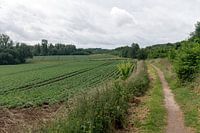 Landgraaf Die Niederlande Sanft gewellte Landschaft mit Kartoffelfeldern in der Limburger Landschaft. Landschaft, Landschaft, Landwirtschaft, Kartoffeln, Solanum tuberosum, Hügel, hügelig, Fußweg, Wandern,