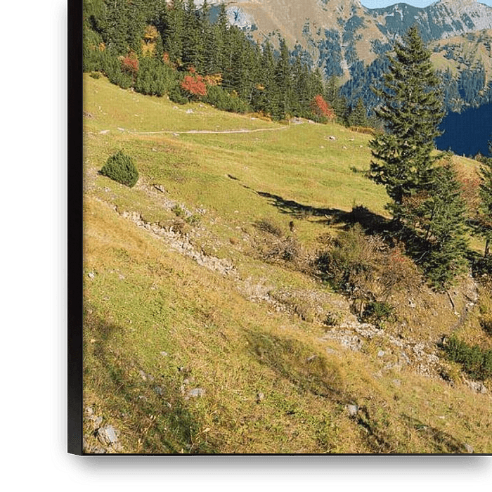 Ihre gewählte Kunst auf Leinwand, gespannt in einem Aluminiumrahmen. Schnell und einfach austauschbar für eine frische Ausstrahlung und ganz nach Ihren Wünschen.