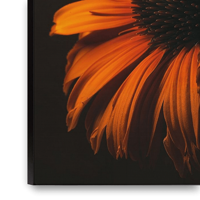 Bestelle dieses Blumen-Wandbild Warme Farben: Eine orangefarbene Echinacea im Licht von Marjolijn van den Berg als Reproduktion auf Leinwand, Alu-Dibond, als Poster, Fototapete oder Acrylglasbild.