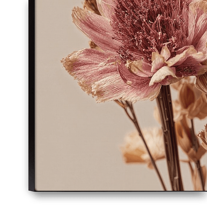 Bestelle dieses Blumen-Wandbild Warmer sandbeiger Trockenblumenstrauß von Esmeé Kiewiet als Reproduktion auf Leinwand, Alu-Dibond, als Poster, Fototapete oder Acrylglasbild.