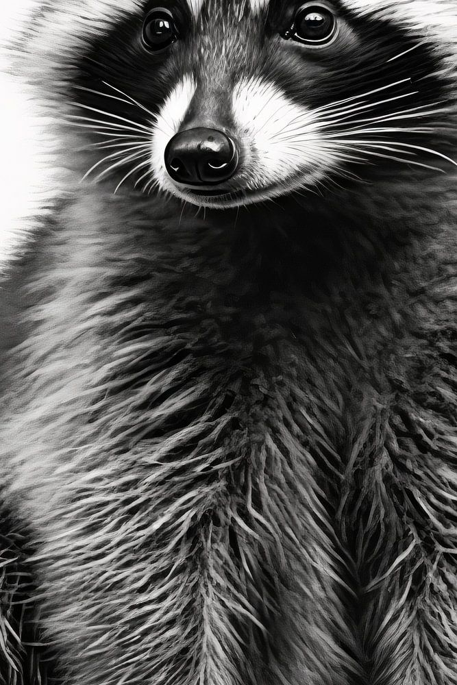 Ein niedlicher Waschbär in schwarz-weißer Strichzeichnung