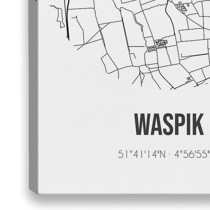 Bestelle dieses abstrakte Wandbild Waspik (Noord-Brabant) | Karte | Schwarz und Weiß von Ortsdrucke als Reproduktion auf Leinwand, Alu-Dibond, als Poster, Fototapete oder Acrylglasbild.