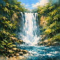 Bestelle das digitale Kunst Bild Wasserfall im grünen Paradies von ButterflyPix als Reproduktion auf Leinwand, Alu-Dibond, als Poster, Fototapete oder Acrylglasbild.