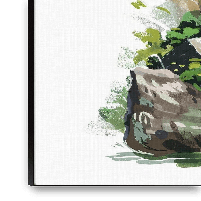 Bestelle dieses Landschafts-Wandbild Wasserfall inmitten von Natur und Felsen von Imperial Art House als Reproduktion auf Leinwand, Alu-Dibond, als Poster, Fototapete oder Acrylglasbild.