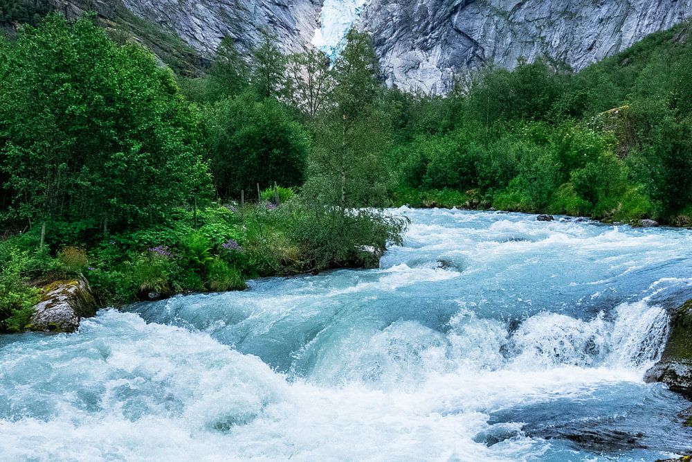 Wasserfluss am Briksdalbreen-Gletscher in Norwegen