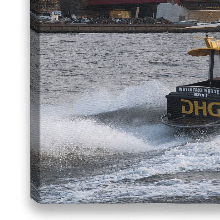 Bestelle dieses Rotterdam-Wandbild Wassertaxi mit Willemsbrug von Prachtig Rotterdam als Reproduktion auf Leinwand, Alu-Dibond, als Poster, Fototapete oder Acrylglasbild.