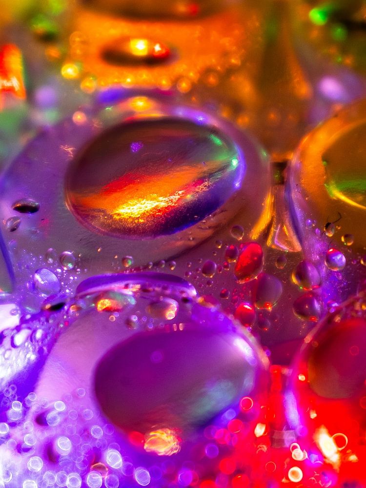 Dieses Werk ist Teil einer fotografischen Serie, in der ich die Wechselwirkung von Licht, Material und Flüssigkeit untersuche. Die Aufnahme zeigt Wassertropfen, die auf einer strukturierten Kunststoffoberfläche liegen. Durch gezielte Beleuchtung entstehen farbige Reflexionen und Lichtbrechungen, die den Tropfen eine fast gläserne Qualität verleihen. Die Farbpalette reicht von kühlen Blautönen über Violett bis hin zu silbrigen Akzenten, was dem Bild eine technische, aber zugleich ruhige Ausstrahlung verleiht.
