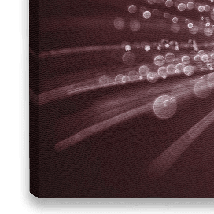 Wassertropfen auf einer Fussel mit Bokeh in roter Tönung
