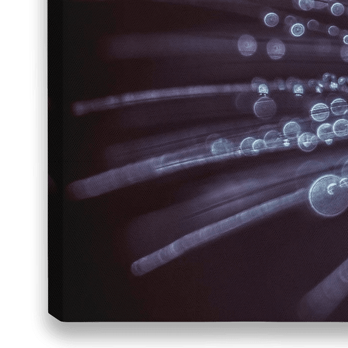 Wassertropfen auf einer Fussel mit Bokeh in einem blauvioletten Farbton