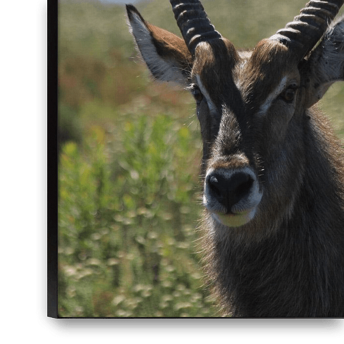 Bestelle das Foto Waterbok in Zuid-Afrikaans wildpark Botlierskop von Jan Roodzand als Reproduktion auf Leinwand, Alu-Dibond, als Poster, Fototapete oder Acrylglasbild.