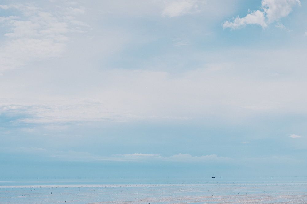Zwei Männer gehen auf dem Wattenmeer bei Oosterend aufeinander zu.