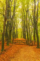 Pfad durch einen Buchenwald mit braunen Blättern auf den Hügeln im Naturschutzgebiet Veluwezoom in Gelderland.