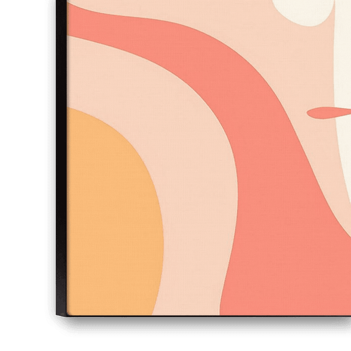 Weiche Gesichtszüge | Modernes Porträt - Dieses ruhige Porträt zeichnet sich durch eine stilisierte, fast abstrakte Darstellung aus, bei der Pfirsichflaumtöne mit weichen Kurven verschmelzen, die die Konturen des Gesichts betonen. Mit einem Hintergrund, der eine beruhigende Palette von warmen Orange- und Beigetönen enthält, bietet dieses Kunstwerk eine moderne Interpretation des klassischen Porträts.
