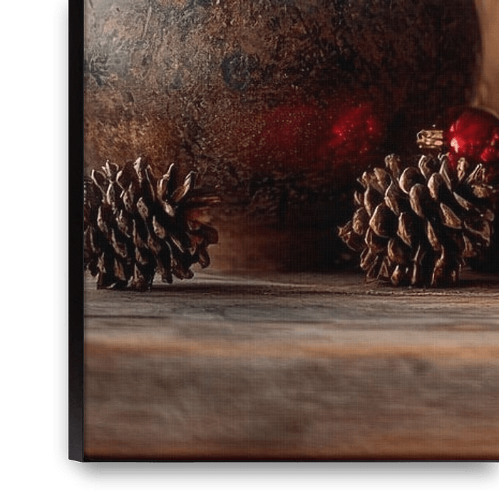 In warmem Holzton erstrahlen festliche Weihnachtskugeln in leuchtendem Rot und Gold, umrahmt von duftenden Tannenzapfen und leuchtenden Beeren. Diese harmonische Anordnung versprüht gemütliche Vorfreude und lädt zum Verweilen ein. Ideal für das Wohnzimmer, schafft sie eine behagliche Atmosphäre, die Herzen und Räume in der Winterzeit…