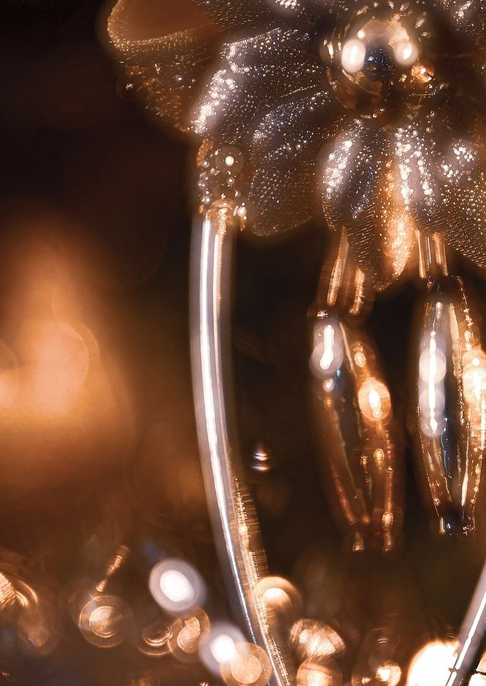 Nahaufnahme eines Weihnachtsbaumschmucks, mit dem nötigen Glitzer. Das Foto wurde in warmen Tönen bearbeitet.
