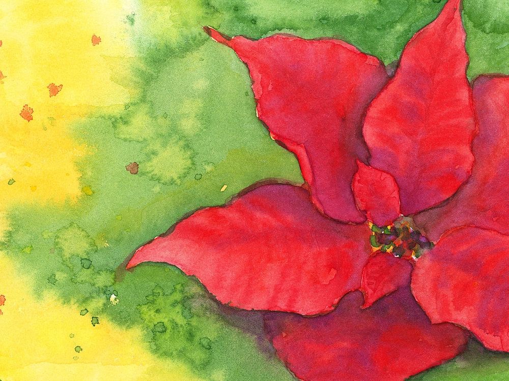 Weihnachtsstern ist ein Aquarellgemälde im Querformat gemalt von der Künstlerin Karen Kaspar. Es zeigt die Blüte eines Weihnachtssterns, auch Christstern oder Poinsettie genannt, in leuchtendem Rot auf einem abstrakten Hintergrund in grün und gelb.