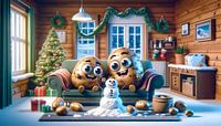 In einer warmen, holzverkleideten Hütte erleben zwei Couch Potatoes die Freude der Weihnachtszeit. Mit strahlenden Augen und einem Schneemann, den sie liebevoll im Wohnzimmer gebaut haben, strahlt das Bild eine heimelige Festlichkeit aus. Draußen fällt leise der Schnee, aber drinnen herrscht die wohlige Wärme des Winters. Die Couch…