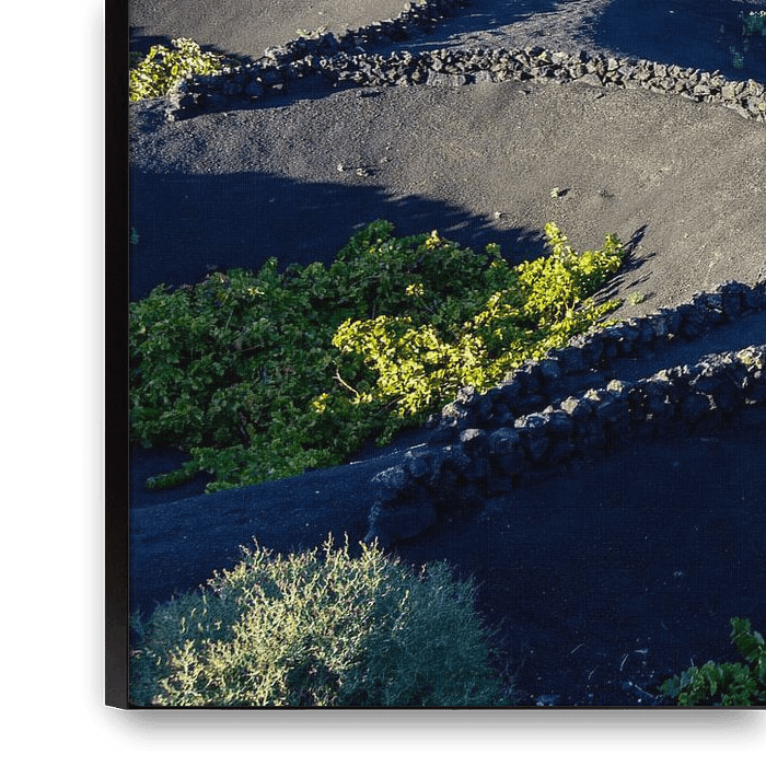 Bestelle dieses Landschafts-Wandbild Weinbau in der Region La Geria auf Lanzarote von Reiner Conrad als Reproduktion auf Leinwand, Alu-Dibond, als Poster, Fototapete oder Acrylglasbild.
